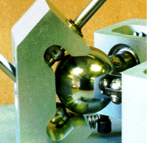 The nonholonomic device analogous to a rolling wheel, but for use in a revolute robot, would have to couple two angular velocities rather than two translational velocities. It would constrain them mechanically to a particular ratio w2/w1 = tan(a) where a, analogous to a steering angle, is controlled by a computer via a steering motor. This device would be used to couple two consecutive joints of a serial arm, in place of the actuators found at the joints of a conventional robot.